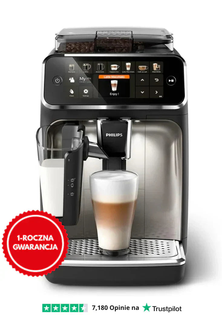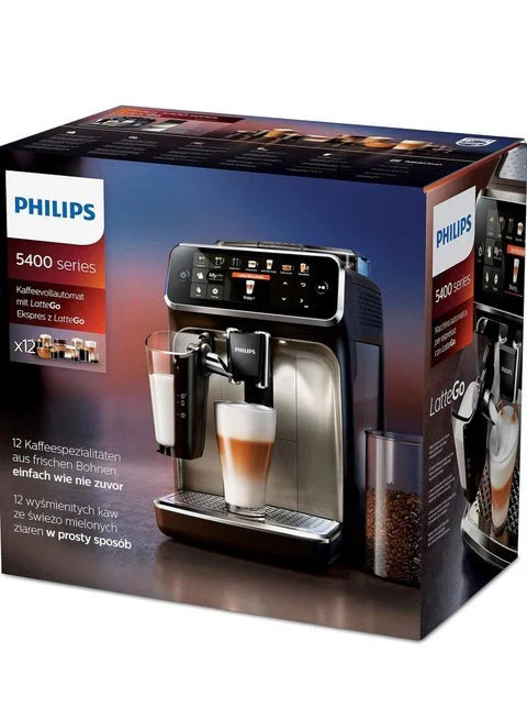 Wybierz bezwysiłkowe rzemiosło w swojej kuchni z ekspresem LatteGo 5400. Dla miłośników, którzy oczekują prawdziwej jakości, urządzenie to zapewnia kawowe wariacje na poziomie baristy za naciśnięciem jednego przycisku — a jego elegancki, nowoczesny design bez trudu dopasowuje się do Twojego wnętrza. Przygotuj cappuccino tylko dla siebie, delektuj się flat white we dwoje lub spersonalizuj swój ulubiony przepis dokładnie tak, jak lubisz — bez kompromisów.